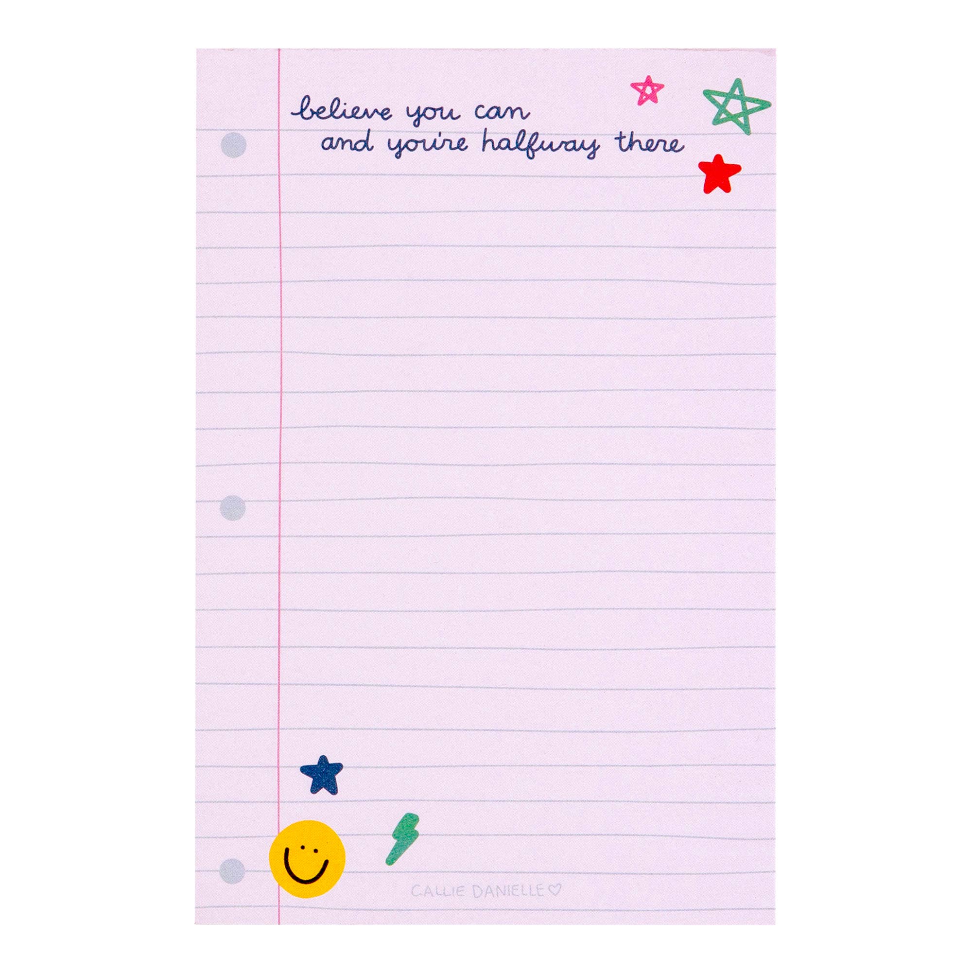 Stay motivated and inspired with our Believe You Can Smiley Notepad! Featuring the uplifting phrase "Believe you can and you're halfway there" paired with cheerful smiley faces, this notepad is perfect for jotting down reminders, goals, or words of encouragement. Its fun, cute design adds a positive touch to your desk or workspace, helping you stay focused and inspired.