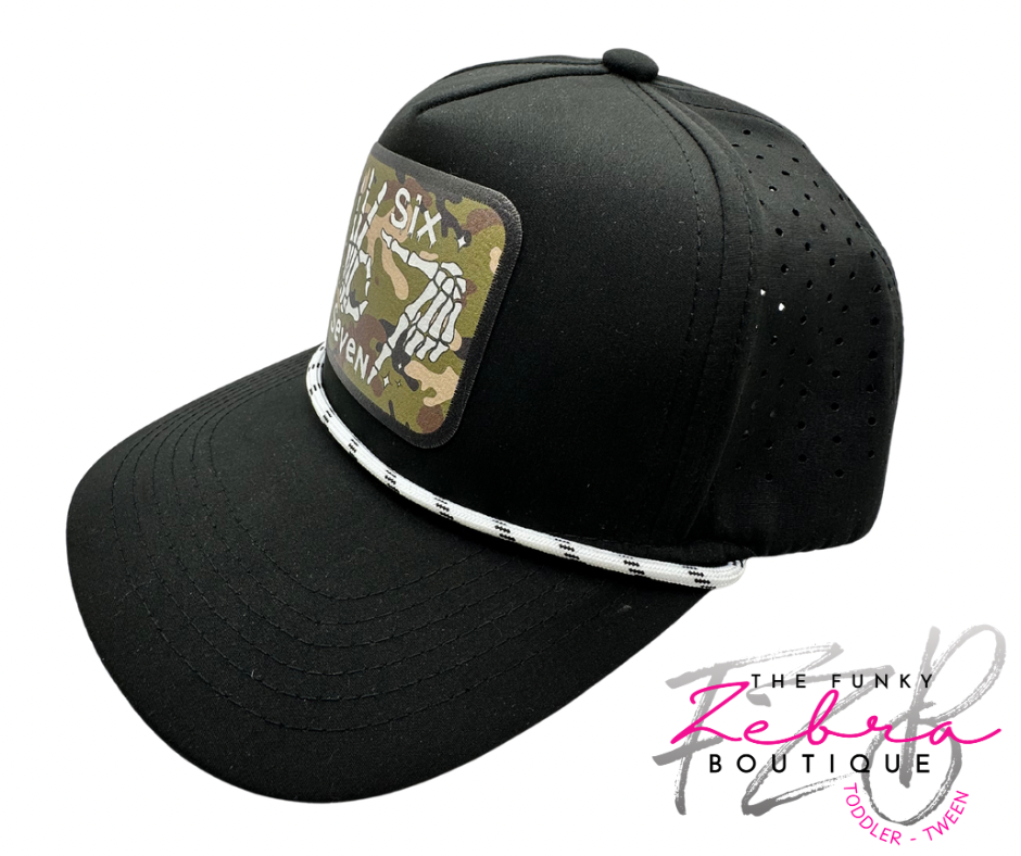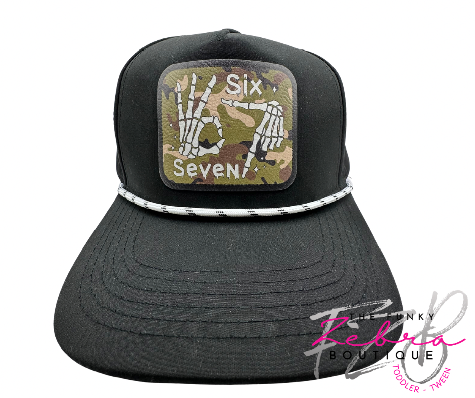 Introducing the ultimate hat for your trendy little dudes! Can you say "six" or "seven" at home without bursting into giggles? This stylish black baseball cap, featuring a breathable perforated back and adjustable snapback, is perfect for those viral moments. Ideal for kids sizes 3T-7/8, it's guaranteed to make them look so cool, even the numbers might start laughing!Β