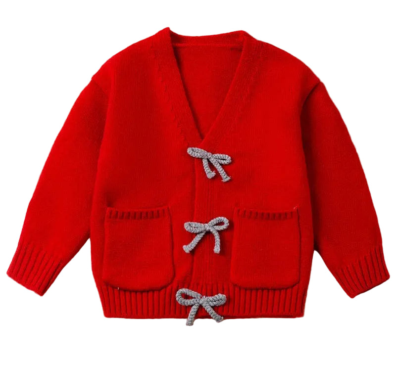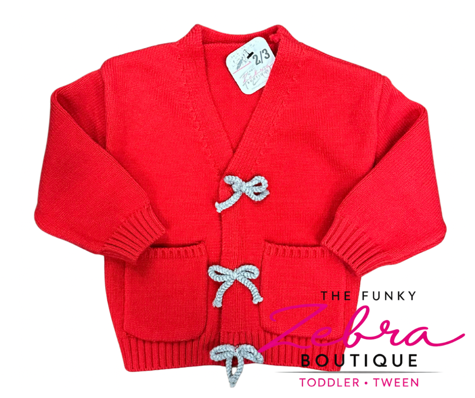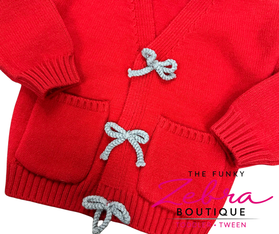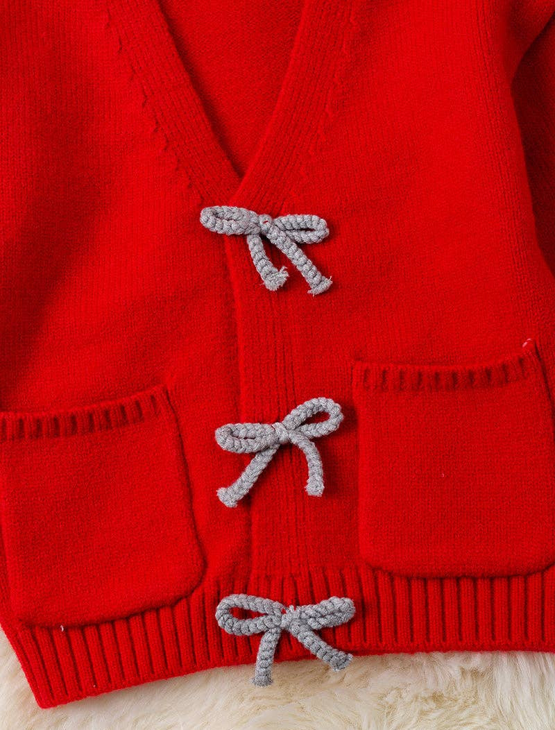 Red Bow Cardigan with Front Pockets Size 2/3-7/8