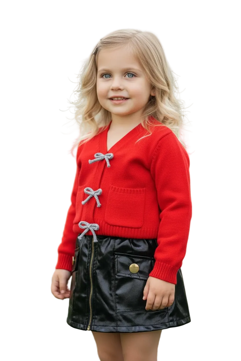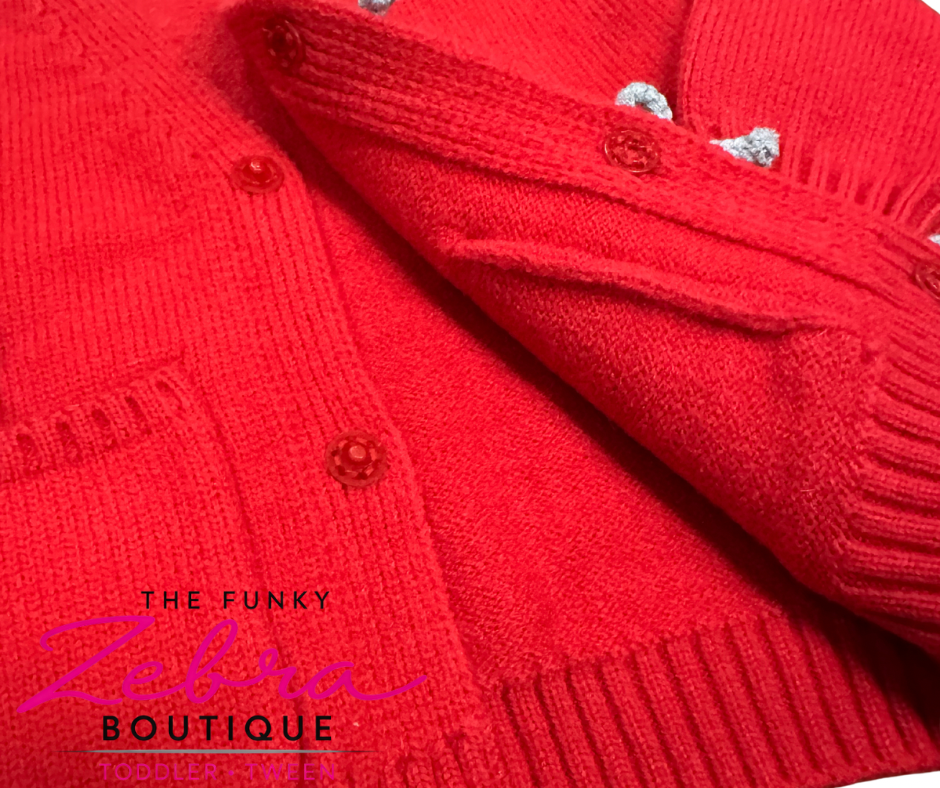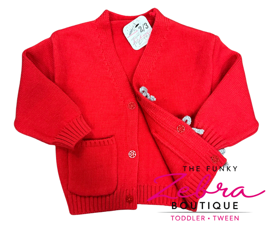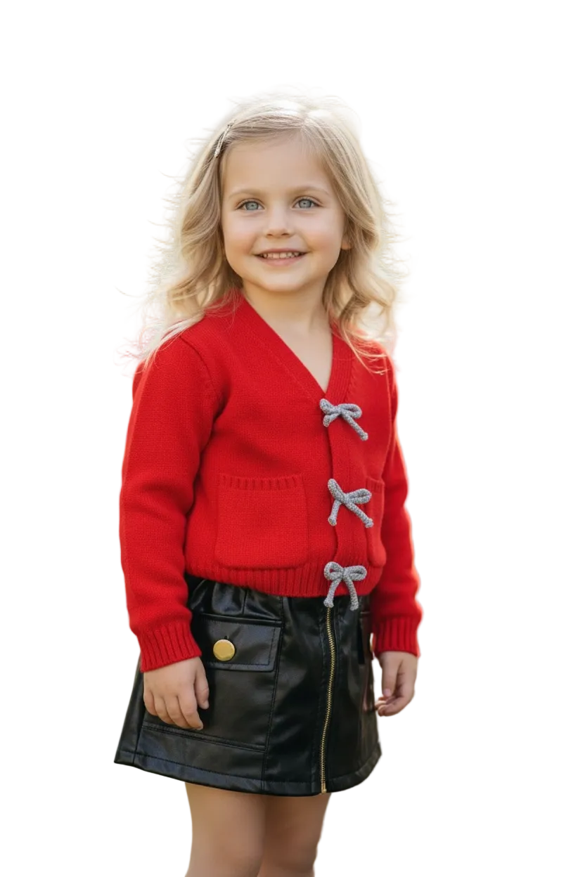 Red Bow Cardigan with Front Pockets Size 2/3-7/8
