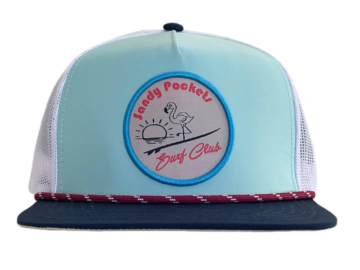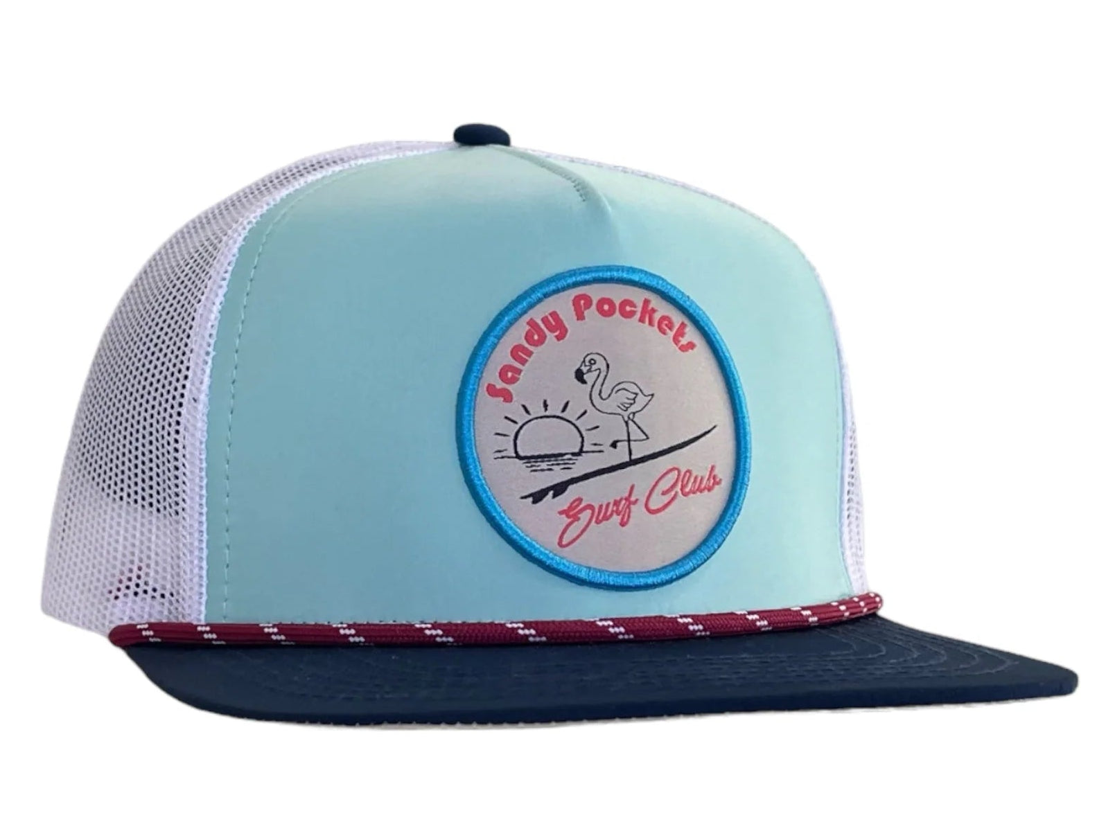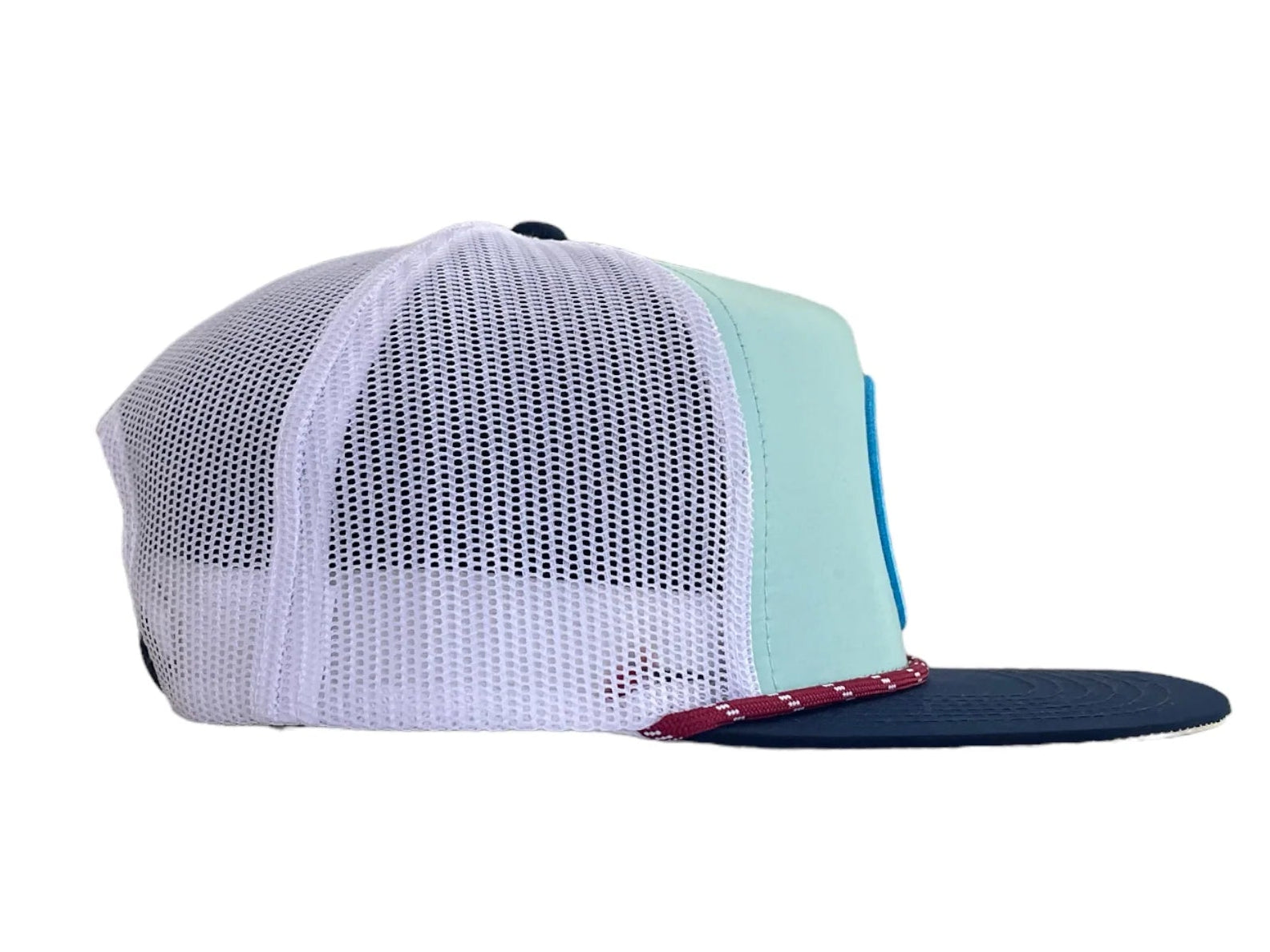 COLORWAY: LIGHT BLUE MATERIAL: NYLON CROWN: MID HEIGHT / STRUCTURED PANEL: 5 VENTILATION: MESH BACK BILL: Hybrid CLOSURE: SNAP BACK ROPE: MAROON AND WHITE