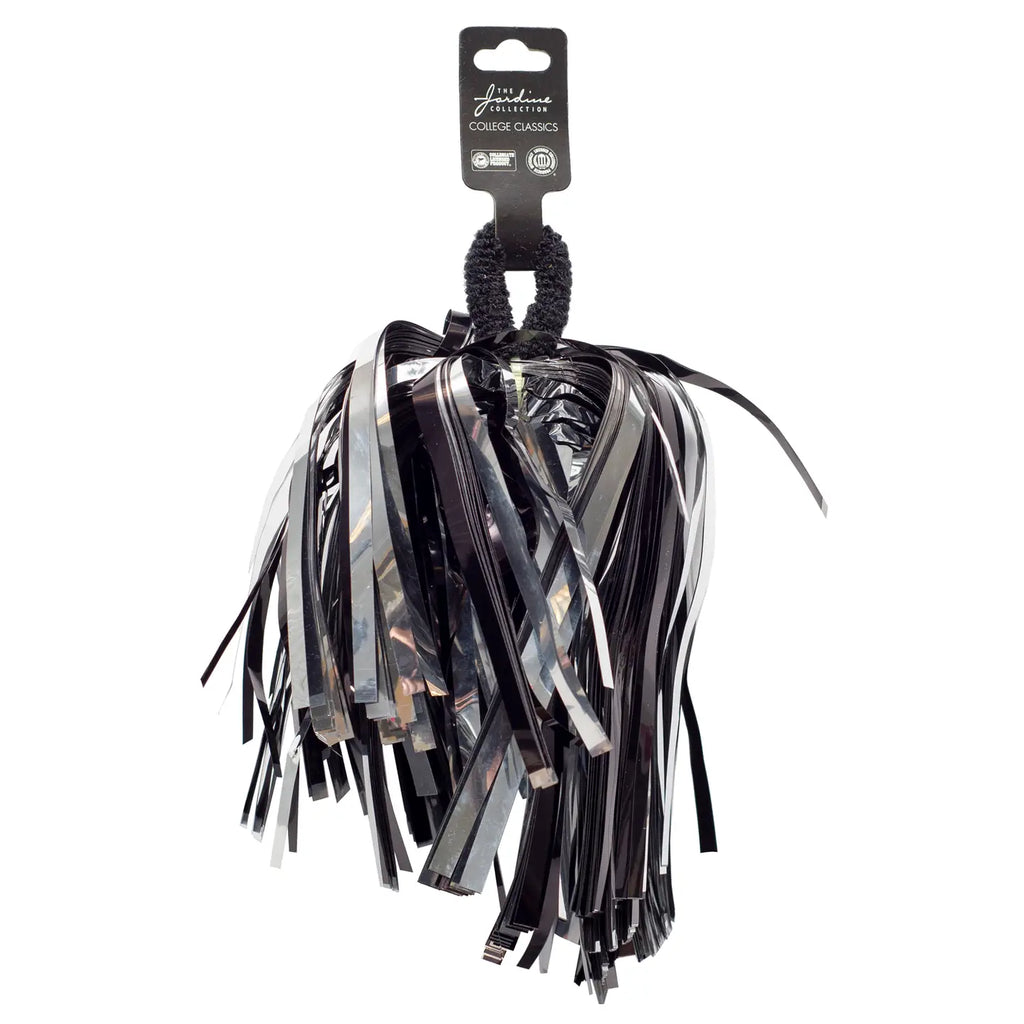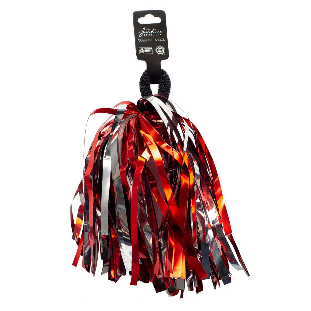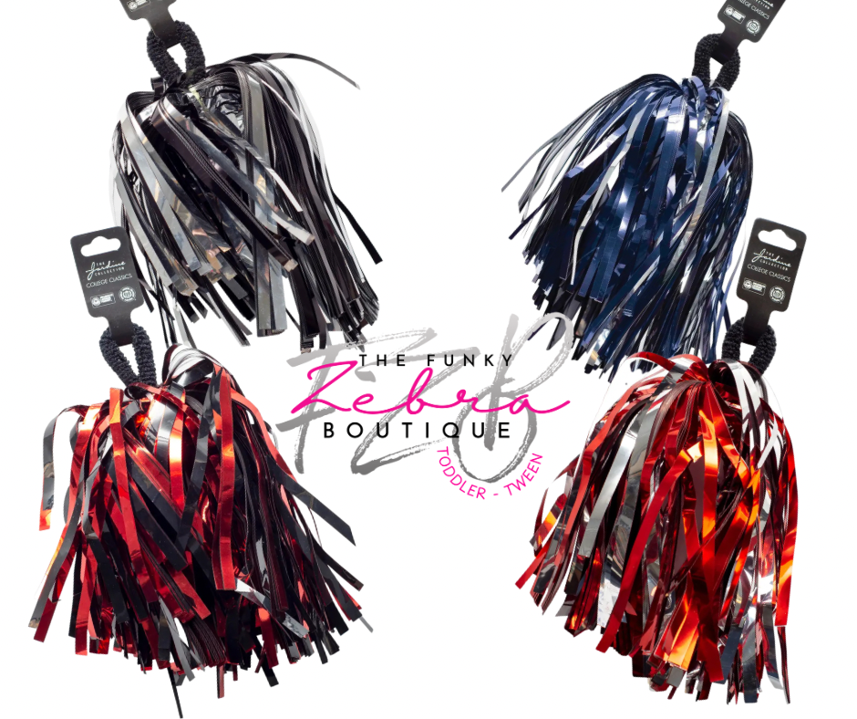 Display your team spirit with these metallic shimmer wrist or hair pom poms. Ideal for game day, tailgating, or any occasion that calls for cheering and celebrating! Spirit accessories are a must. These cheer pom poms are made of quality metallic foil and include a soft stretchable elastic band for wearing on your wrist or to decorate your hair. Sold individually.