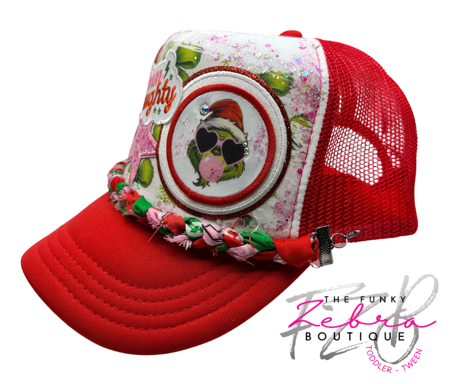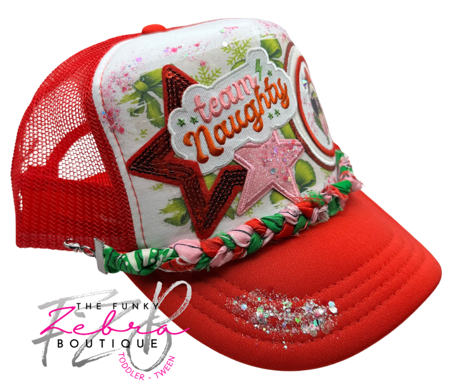 Team Naughty Green Furry Bow theme foam trucker hat.