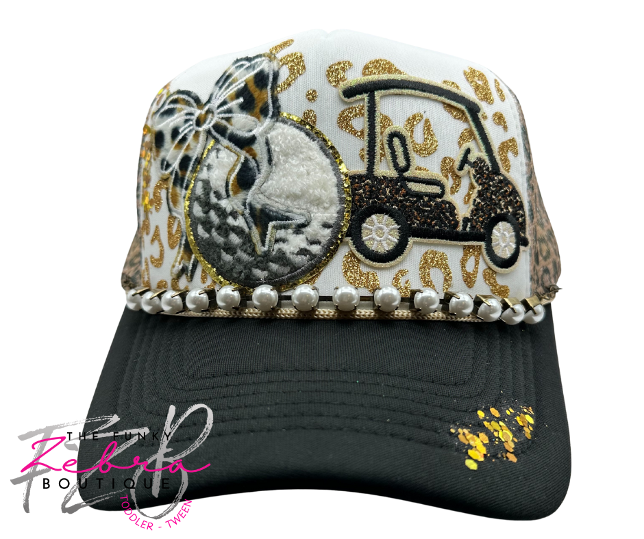 Adult Golf Gold and Leopard Print Foam Front Trucker Hat