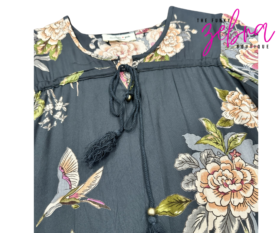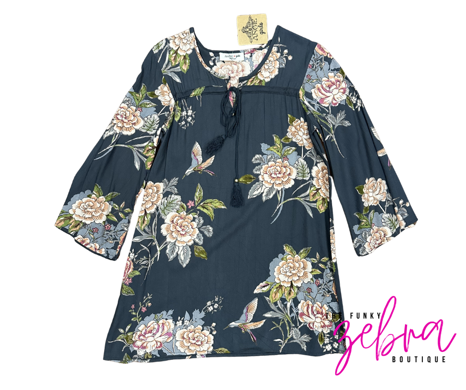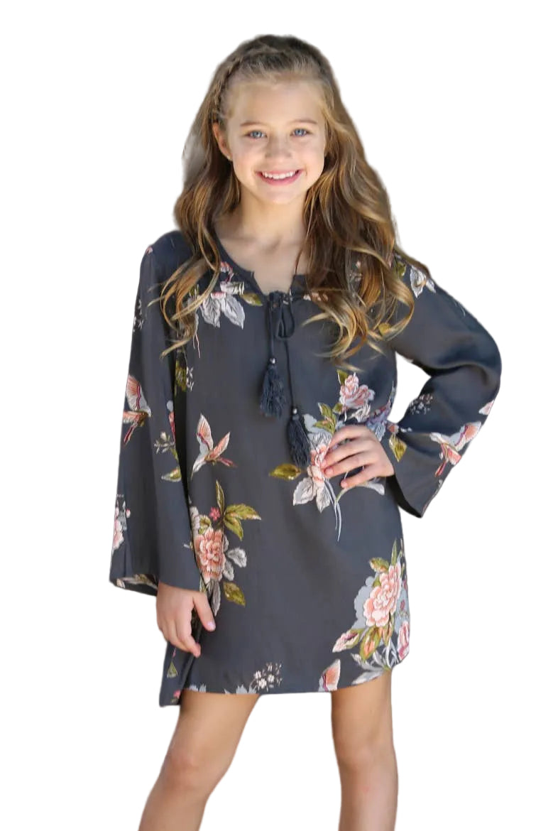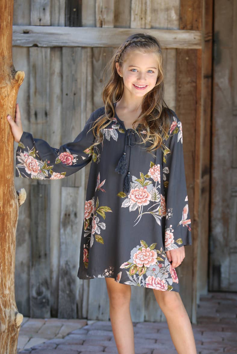 Sweet, stylish, and effortlessly on-trend, this Angie floral dress is perfect for girls and teens who love a little boho charm in their wardrobe. Featuring a beautiful allover floral print on a rich dark background, this dress blends softness with standout style.