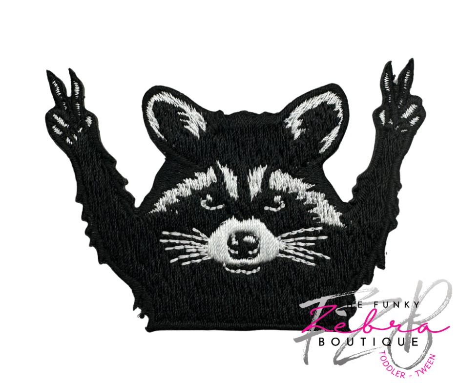 Peace Sign Raccoon Embroidered Iron On Patch
