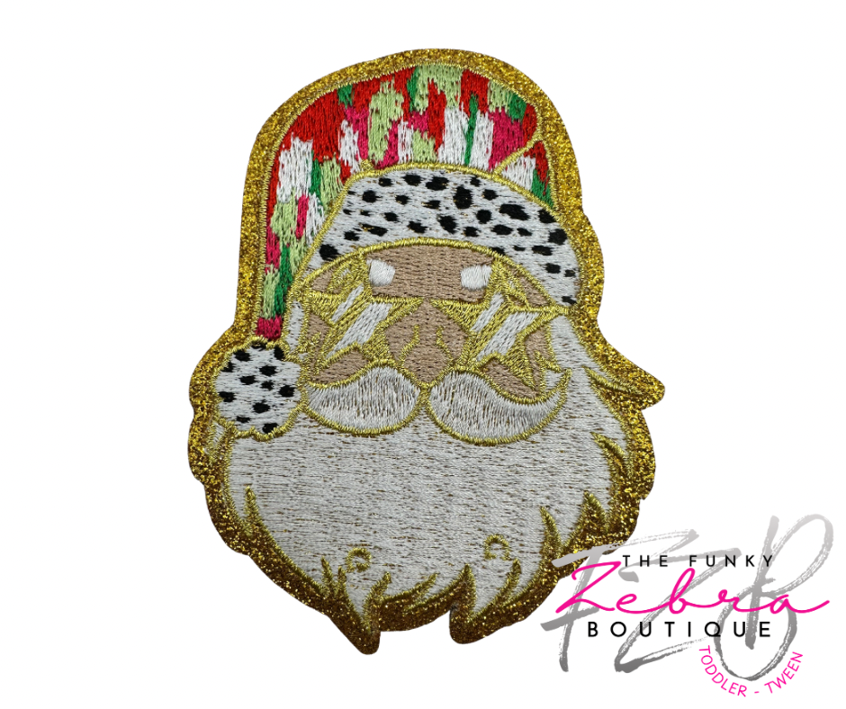 Christmas Santa Gold Glitter Embroidered Iron On Patch