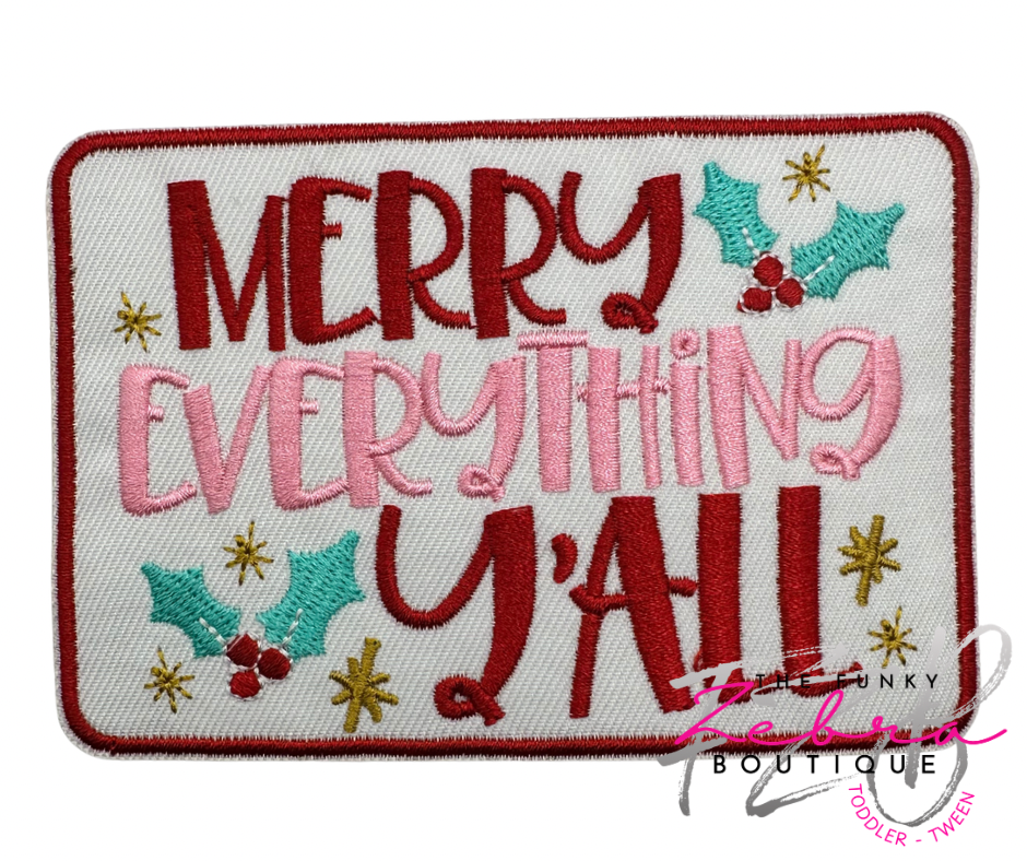 Christmas Merry Everything Y'All Embroidered Iron On Patch