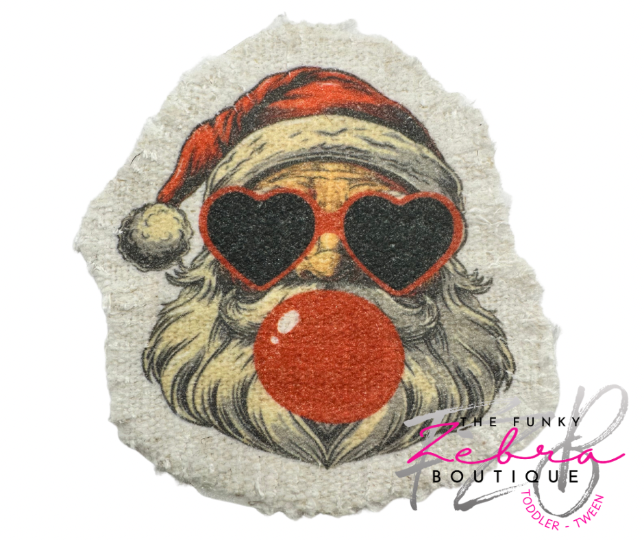 Christmas Shabby Distressed Santa Blowing Bubblegum Bubble Fabric Iron On Patch