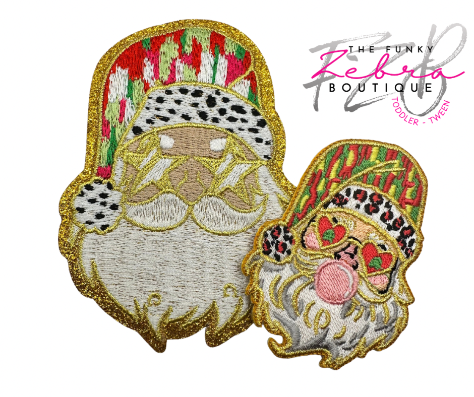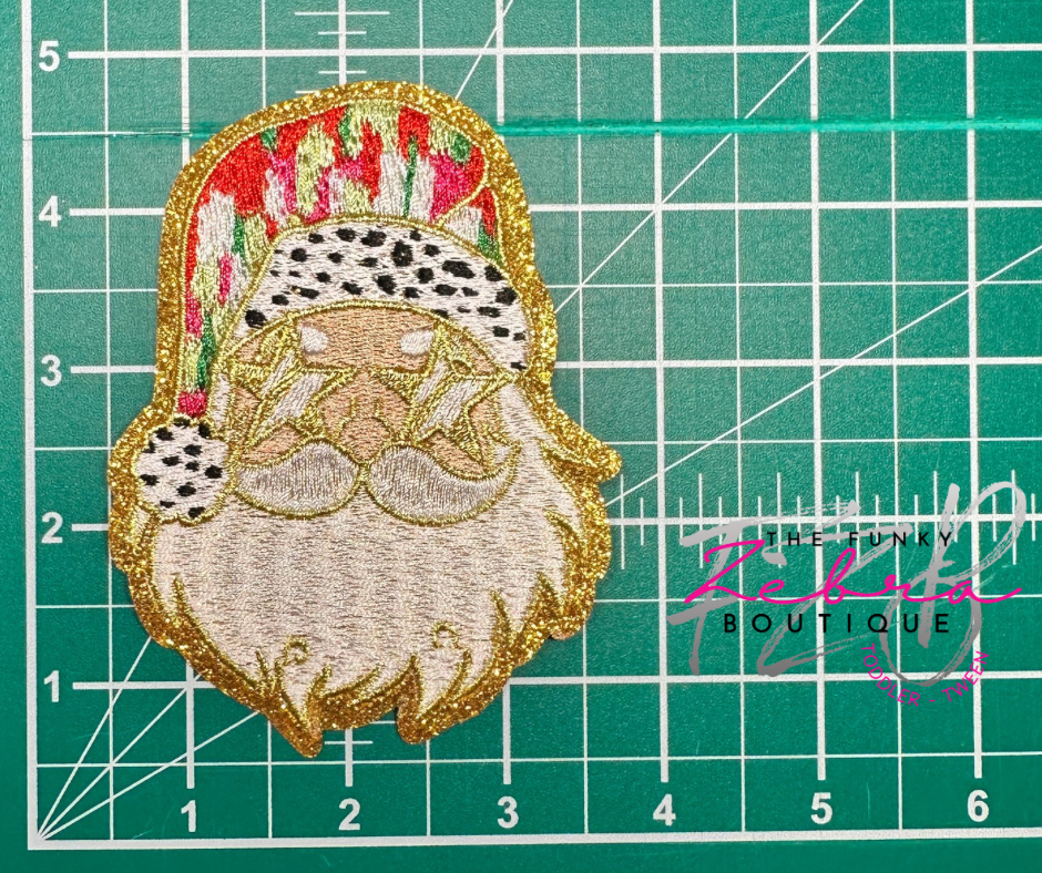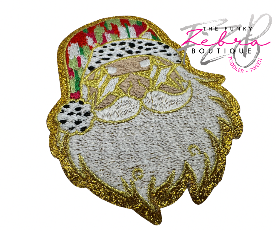 Christmas Santa Gold Glitter Embroidered Iron On Patch