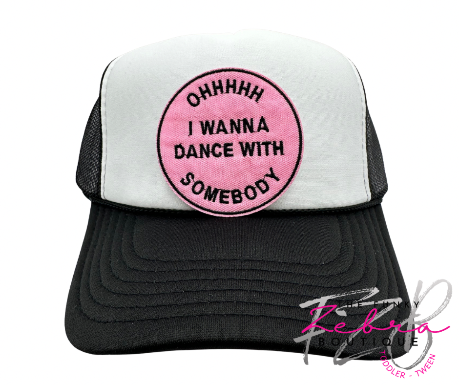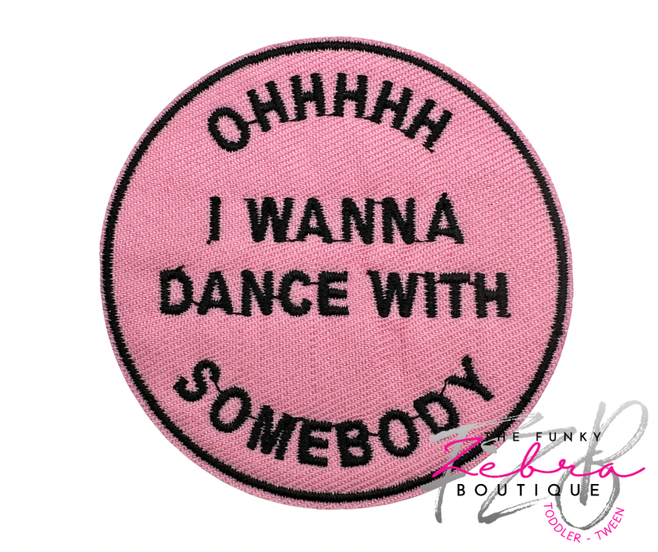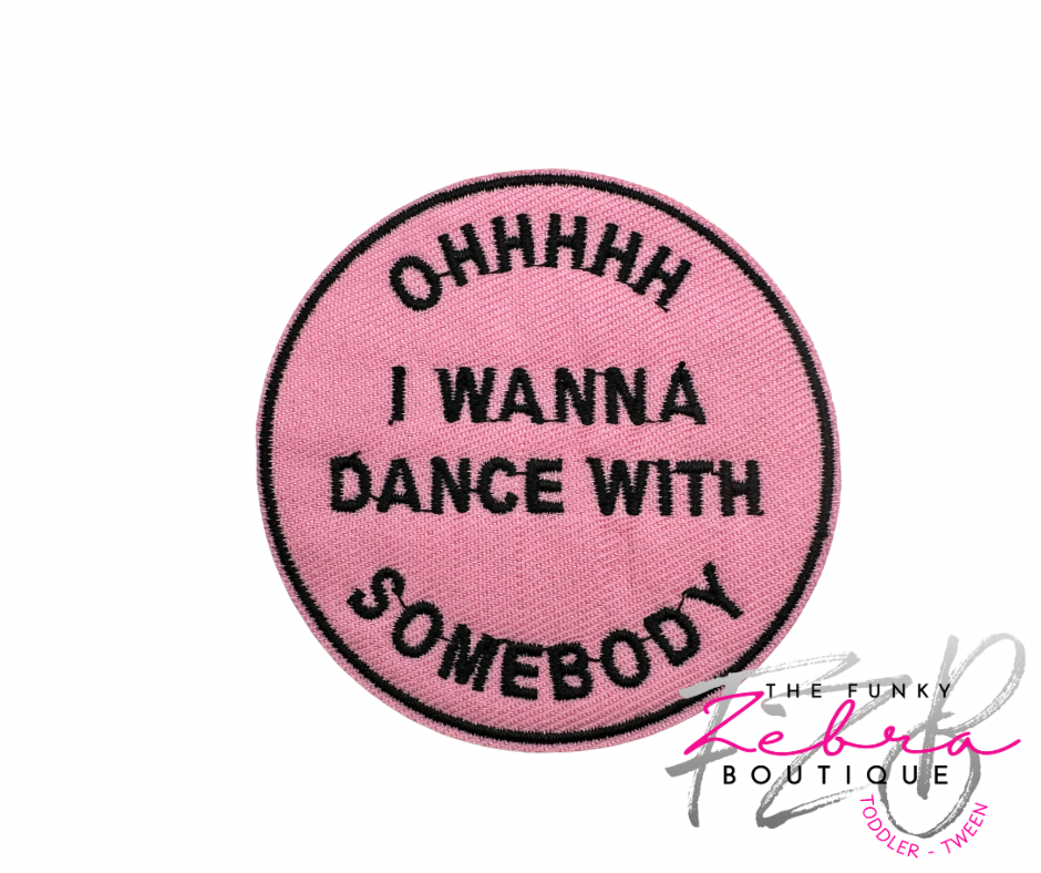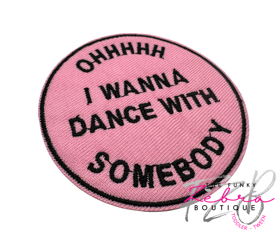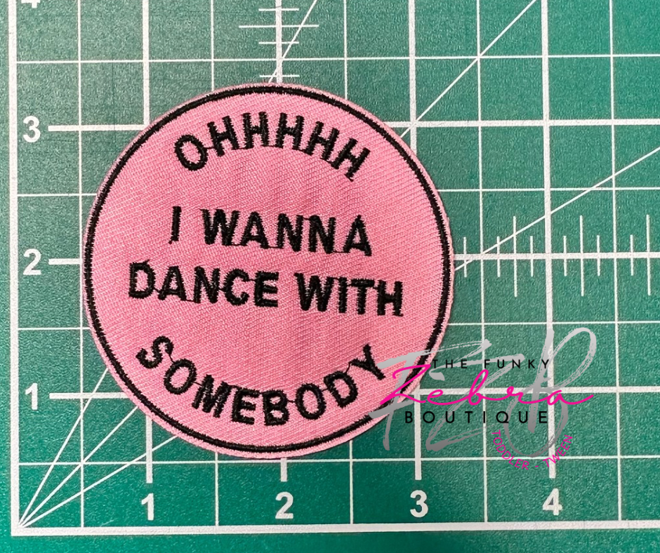 Ohhhhh I wanna dance with somebody candy pink patch with black thread.