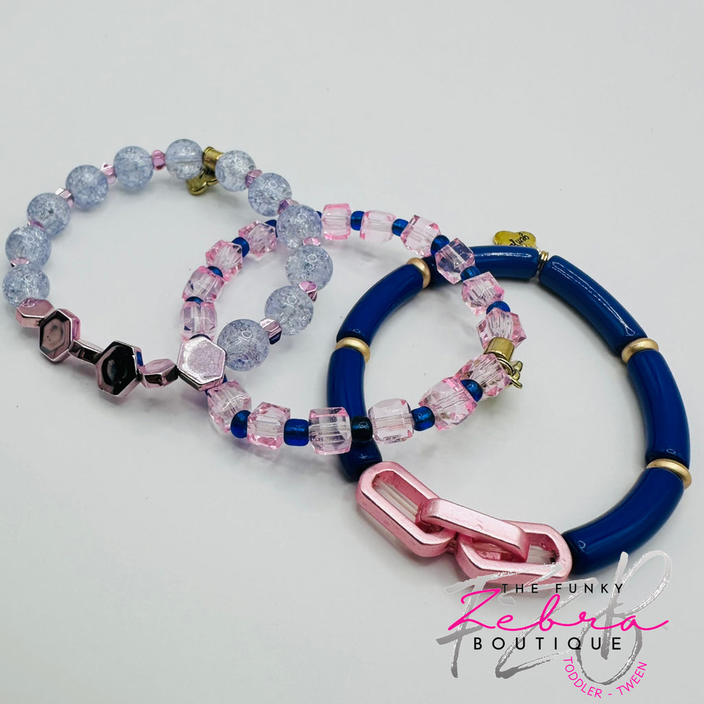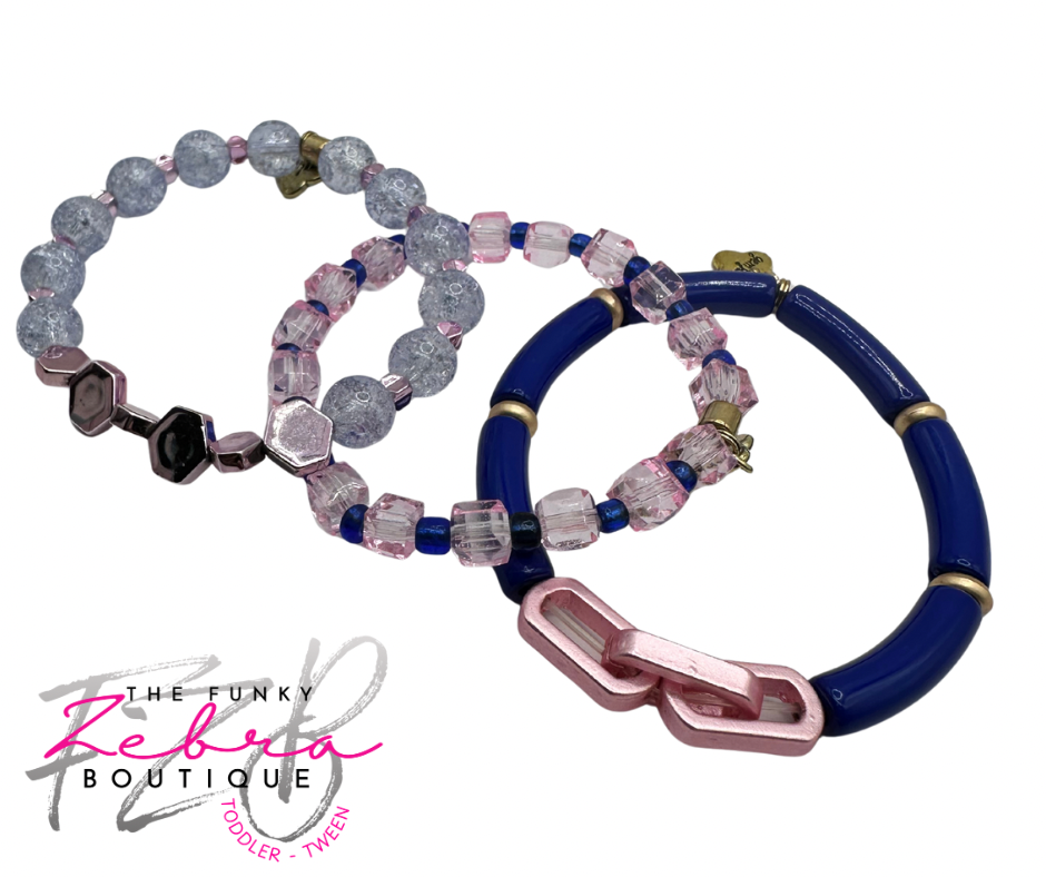 Bracelets are 'one size fits most' and are measured for a 6.5" wrist size. Fits age 4-11 best.