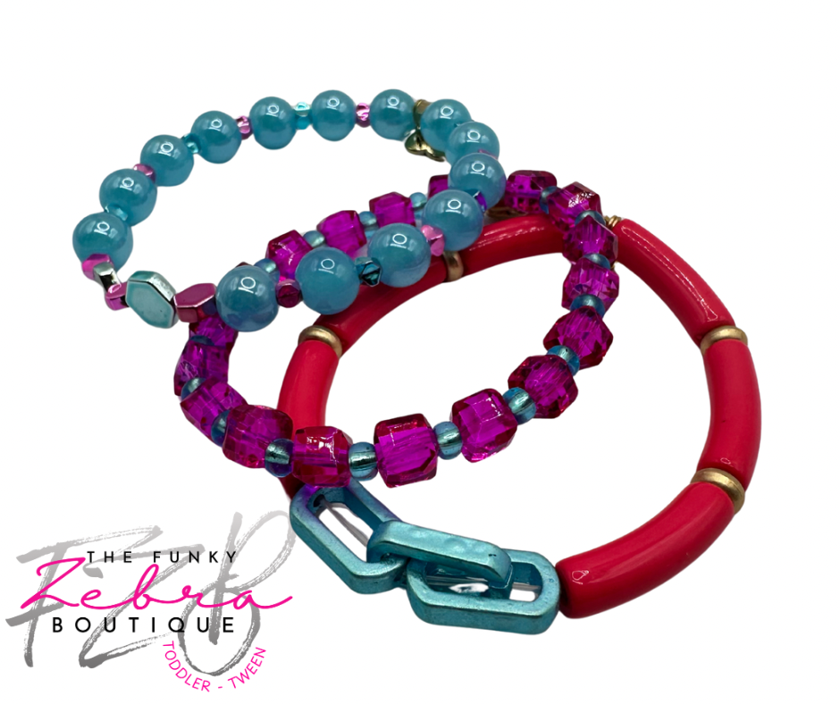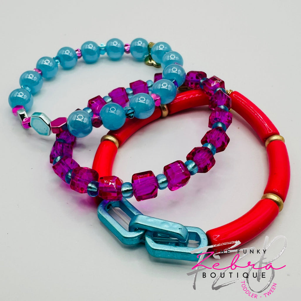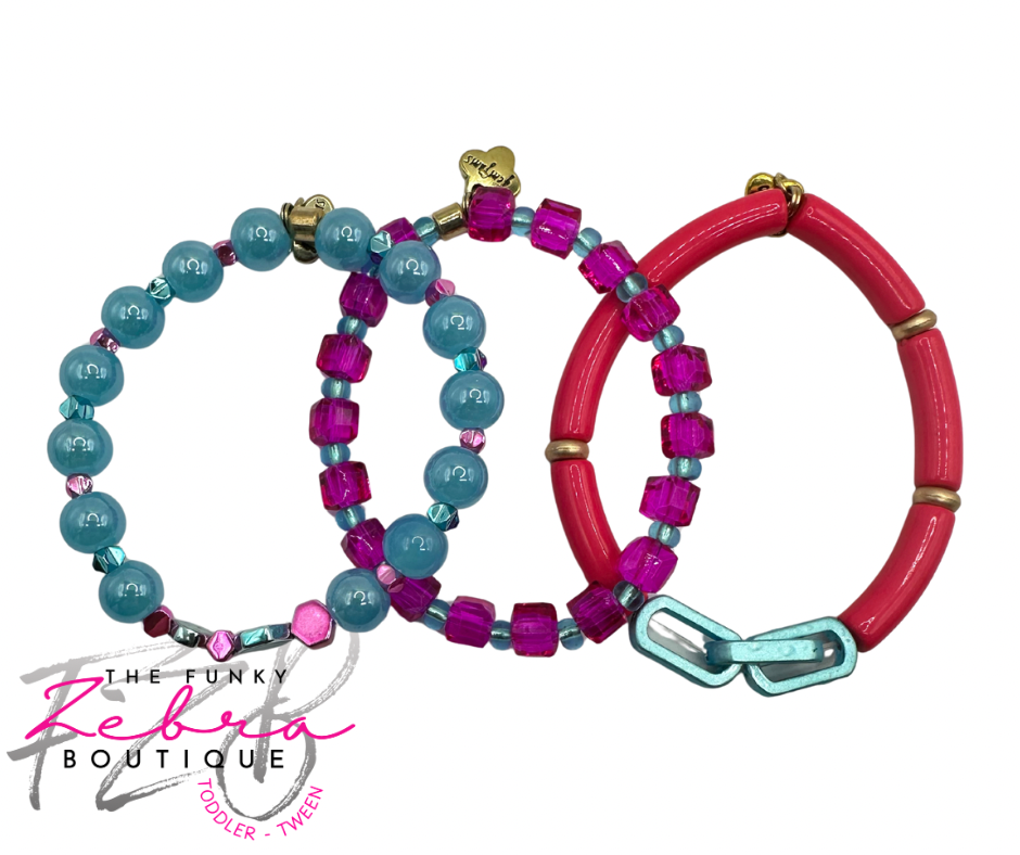 Bracelets are 'one size fits most' and are measured for a 6.5" wrist size. Fits age 4-11 best.