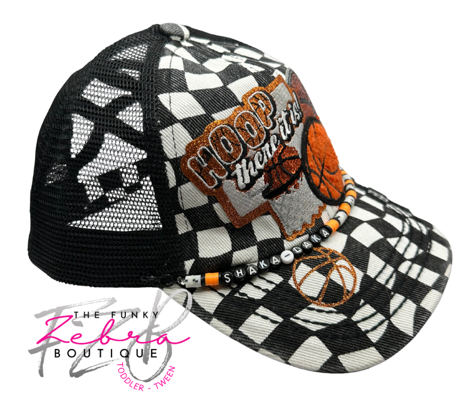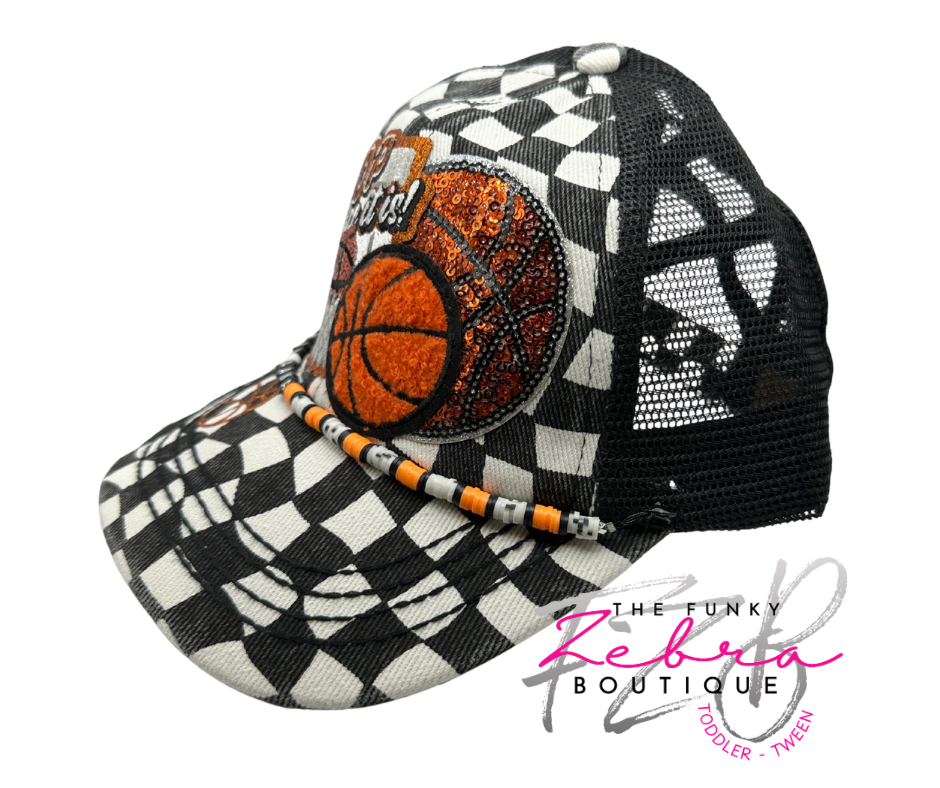 Adult Basketball Hoop There It Is Crisscross Ponytail Black and White Checkered Baseball Hat