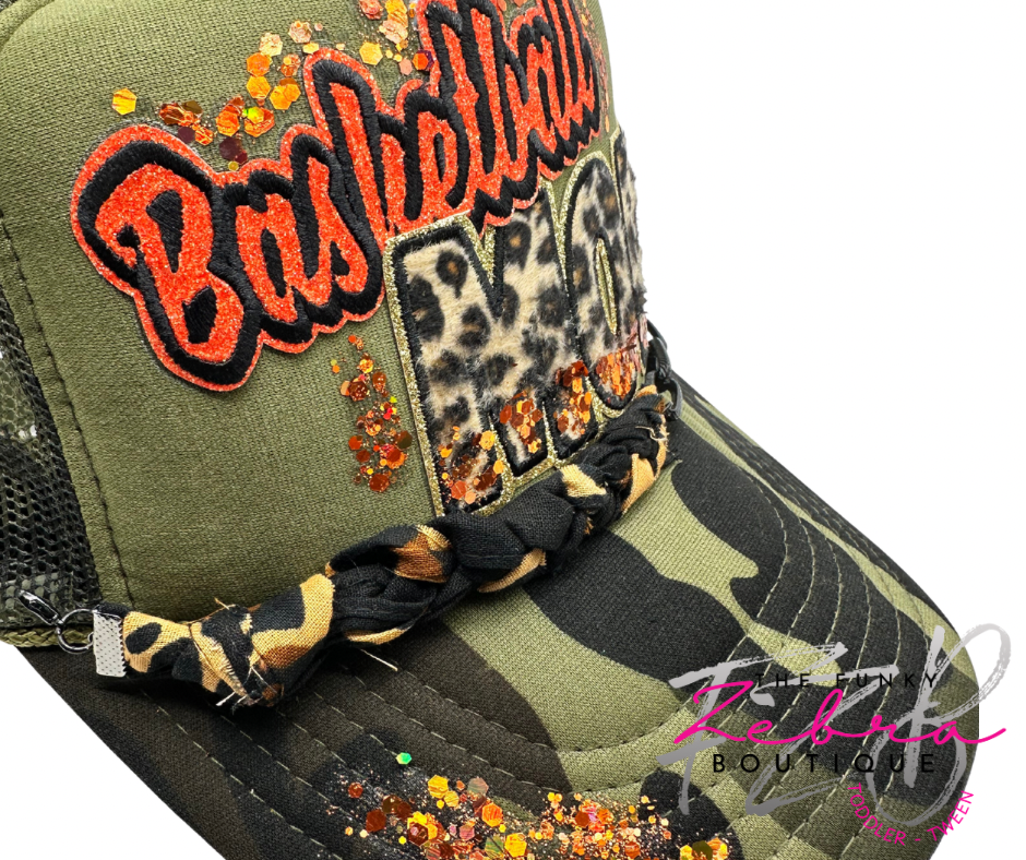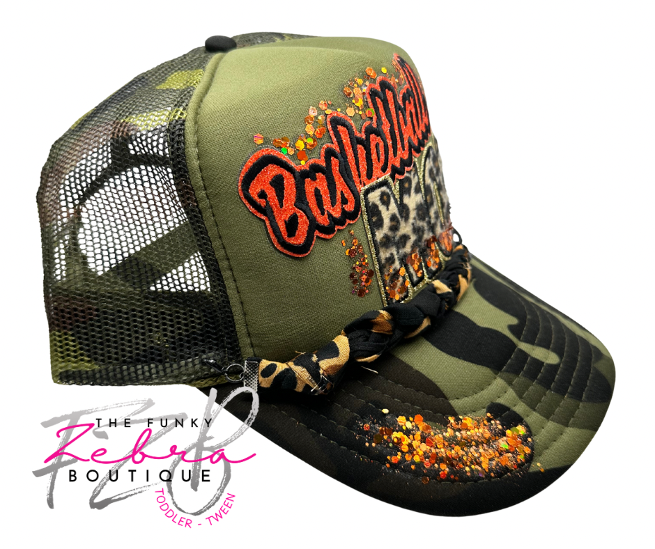 Adult Basketball Mom Leopard Print and Camouflage Trucker Hat
