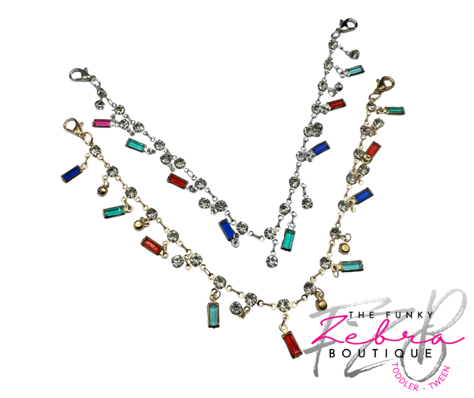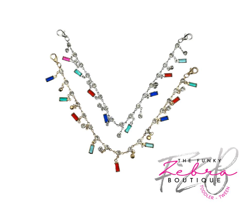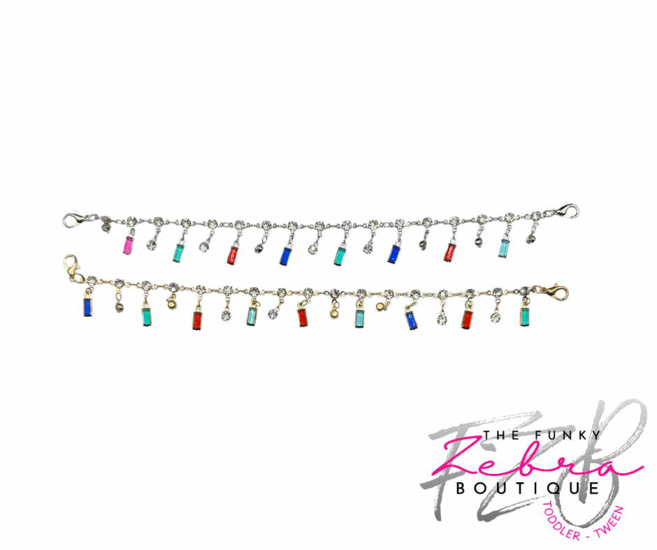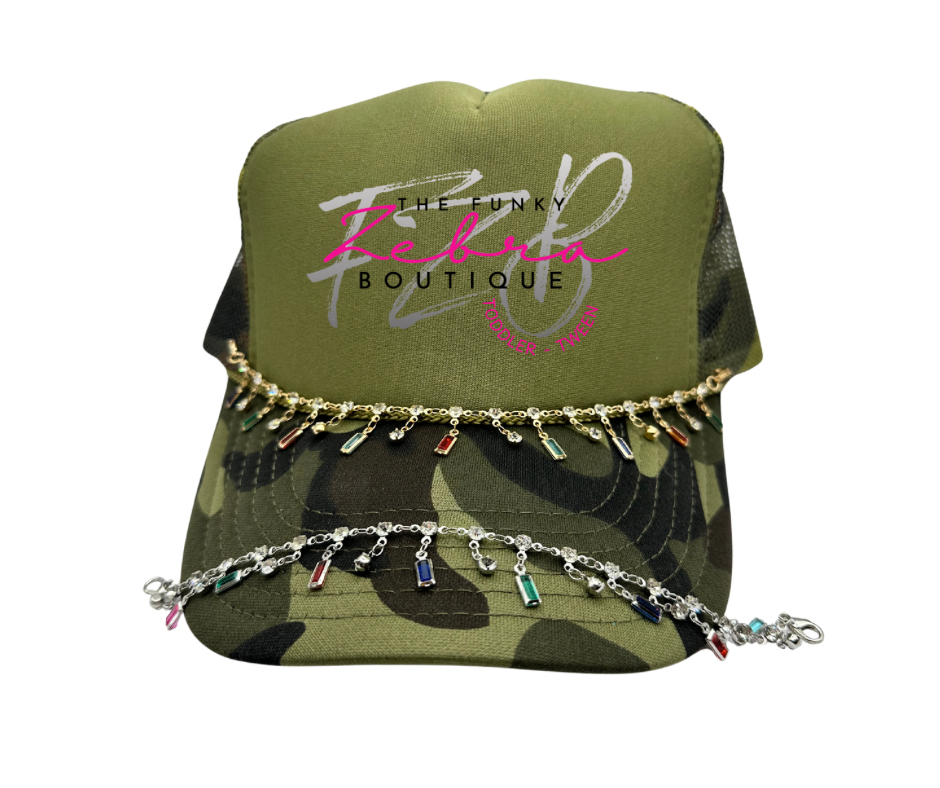 Classy and sassy! These hat chains feature clear gems on the chain and colorful rectangle charms that dangle. The chains come with lobster clasps for easy attachment to the hats mesh section.Β