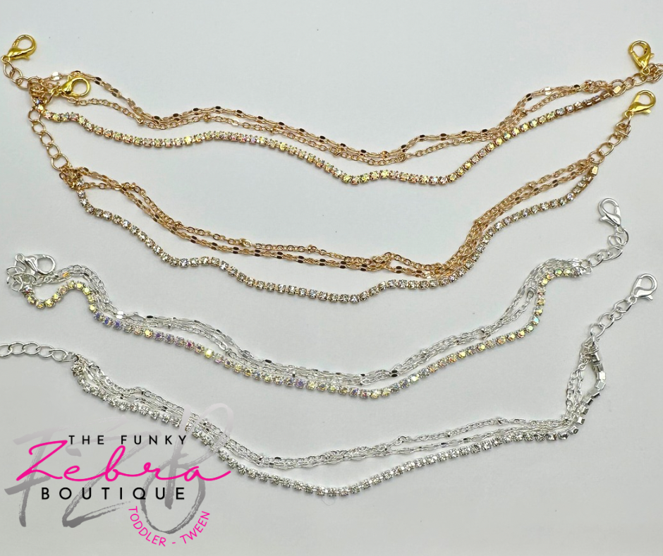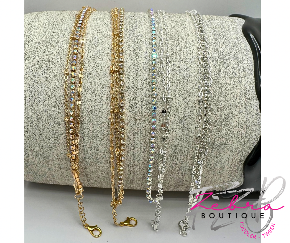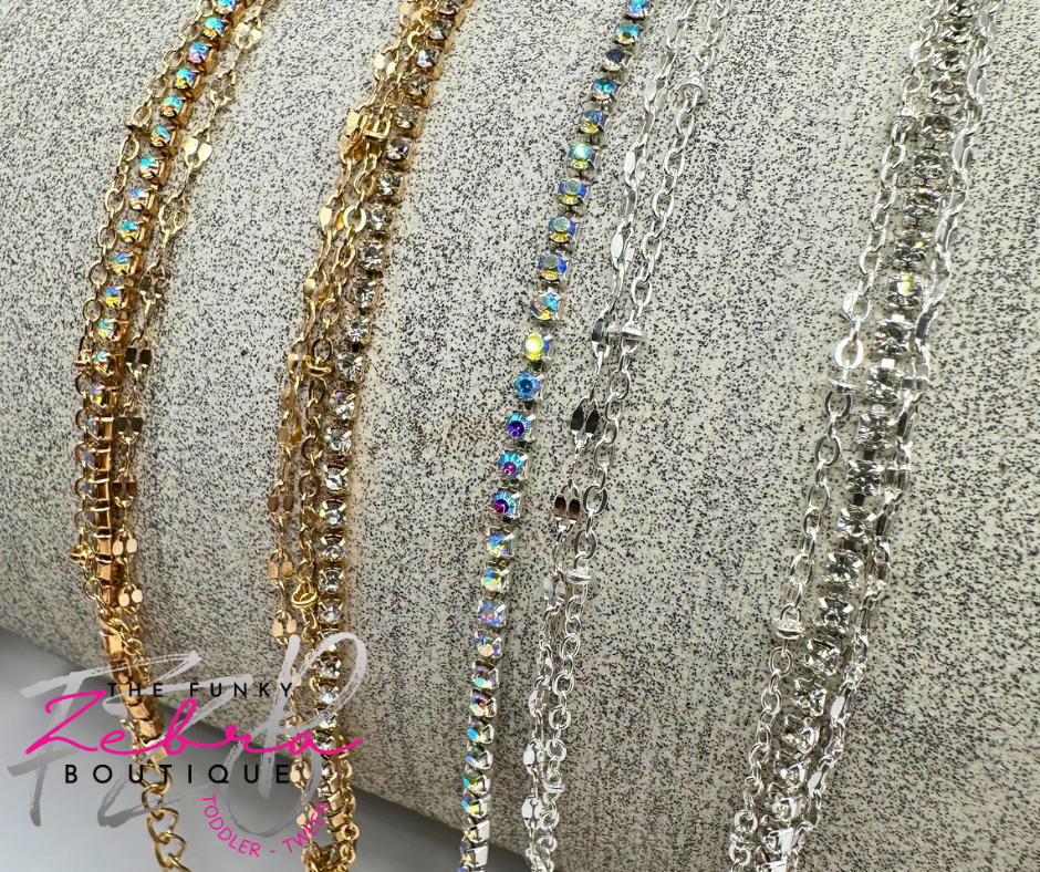 Hat Chain Dainty Three Row Gold or Silver Rhinestone Chain with - Pick Your Style