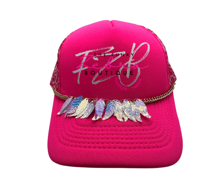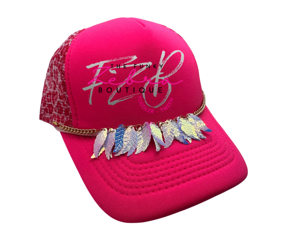Sassy! These loaded holographic hat chains with leaf dangle charms will add an off centered flare to all hats. The chains come with lobster clasps for easy attachment to the hats mesh section.