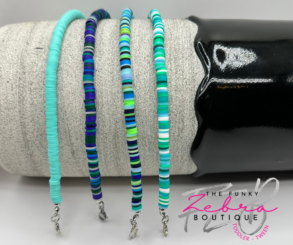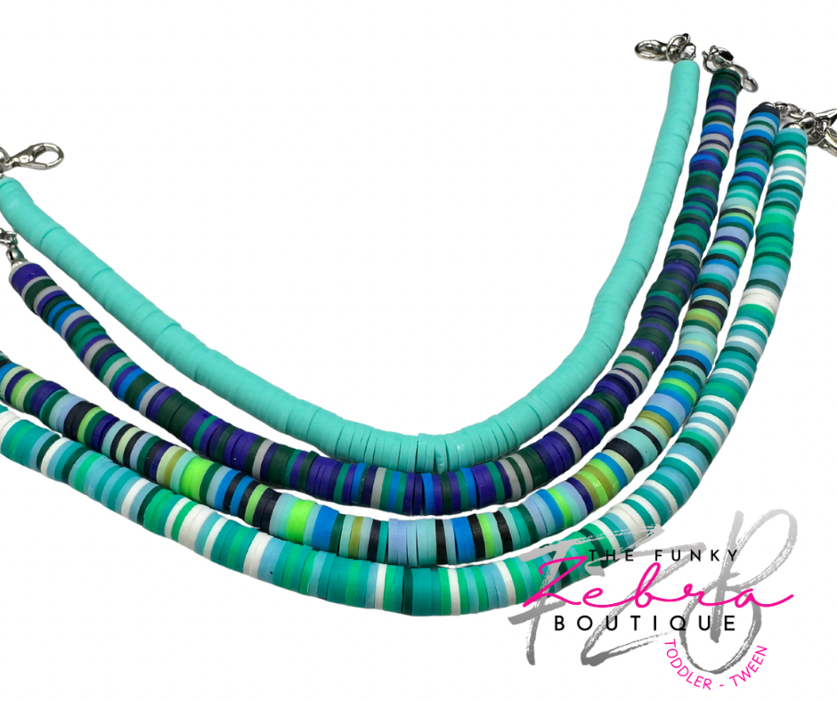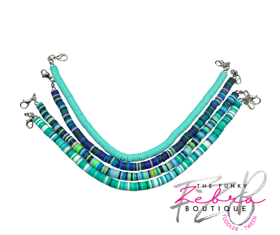 Hat Chain Aqua Blue Polymer Clay Heishi Disc Bead Chain - Pick Your Style
