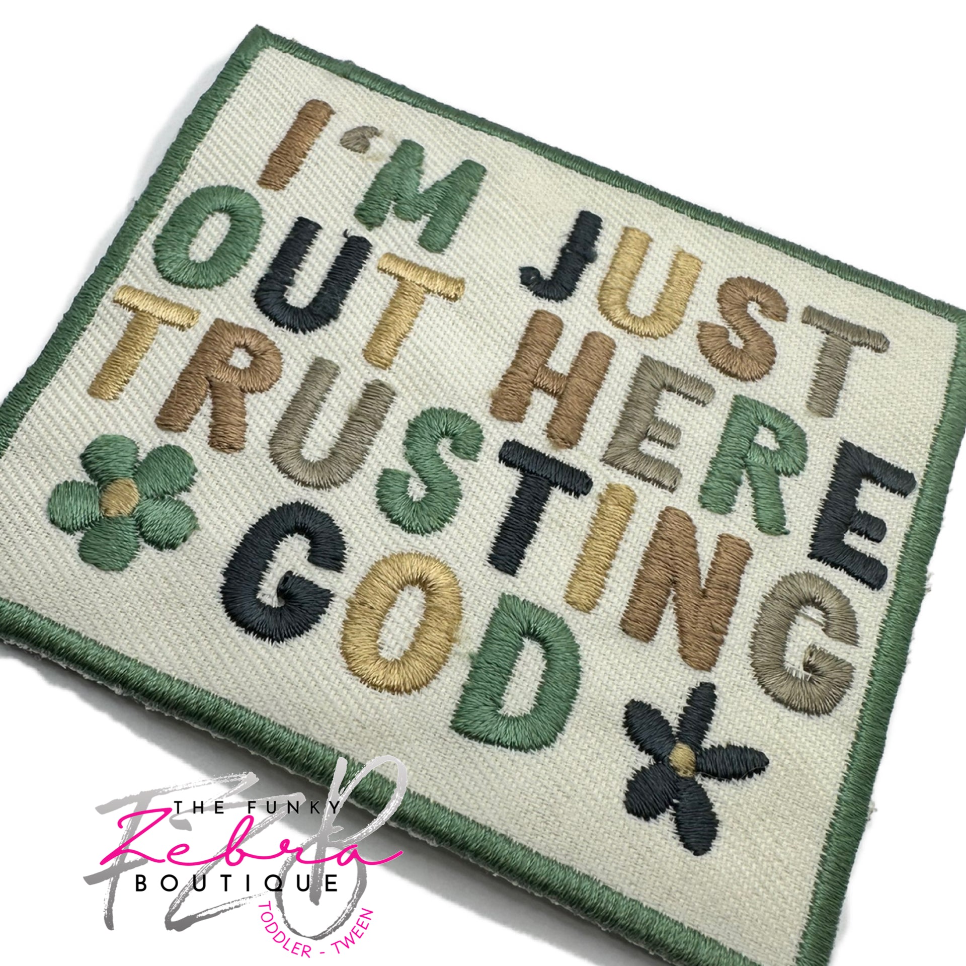 Faith I’m Just Out Here Trusting God Embroidered Iron On Patch