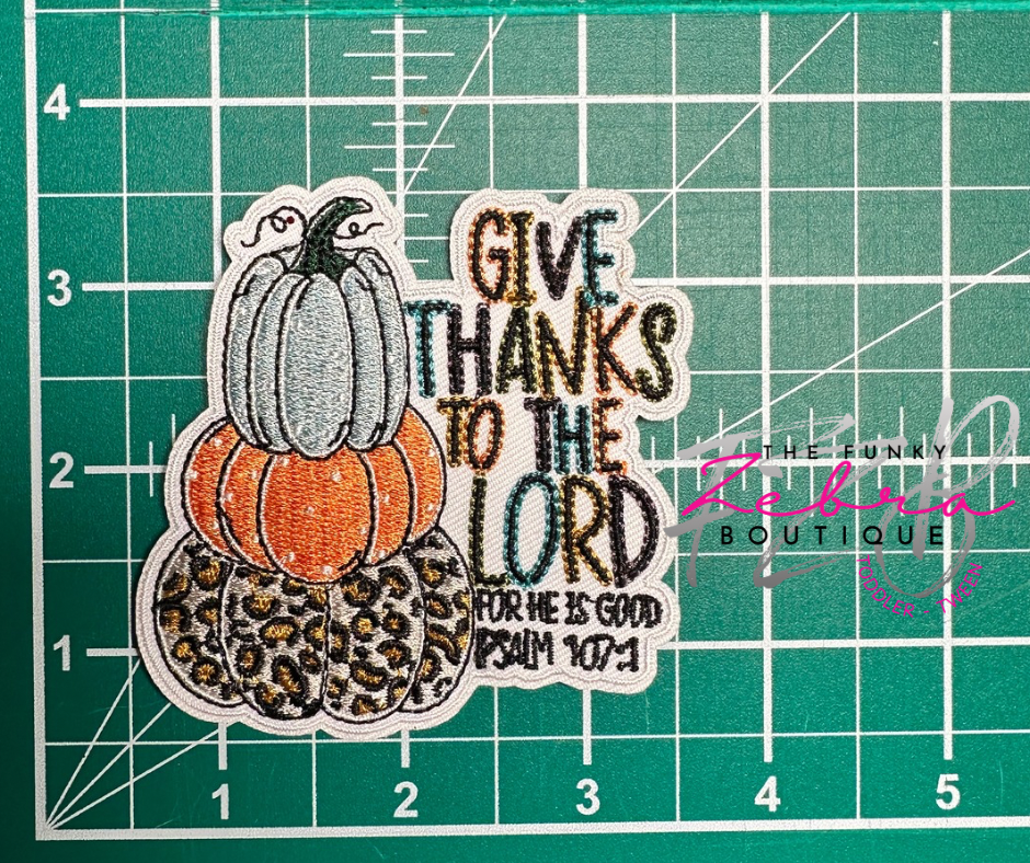 Thanksgiving Give Thanks To The Lord Pumpkin Embroidered Iron On Patch